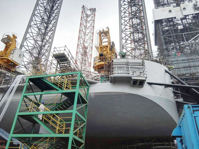 該平臺(tái)除居住外還可以對(duì)海上鉆井平臺(tái)提供修檢服務(wù)。